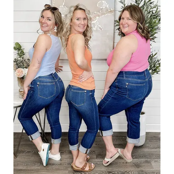 (3) INSANE STRETCH.These capri jeans feature 2% spandex for insane stretch! They are buttery soft and they snap right back into place! You do not have to worry about these sagging as the day goes on.